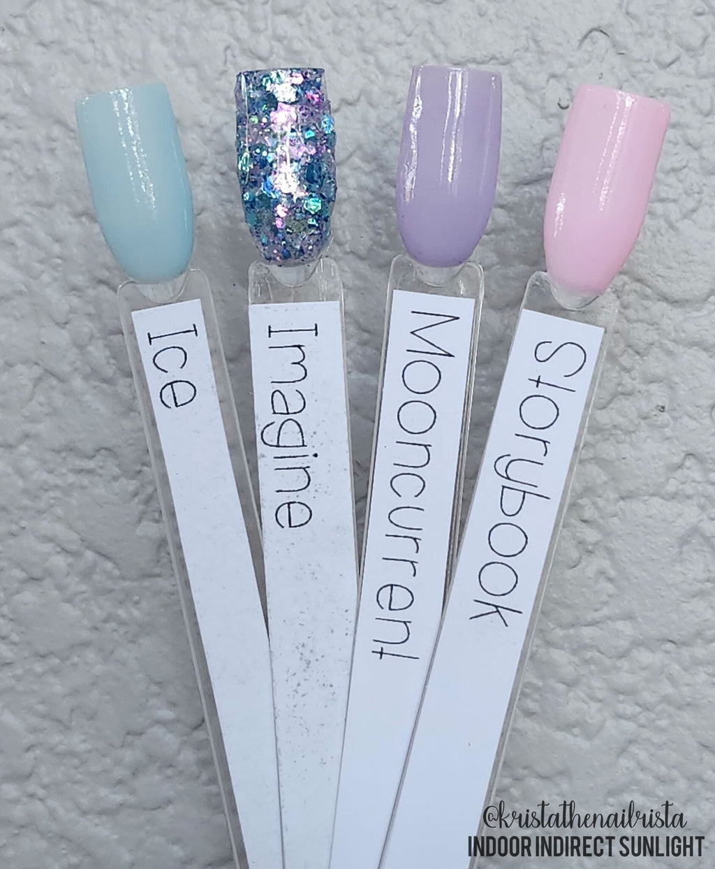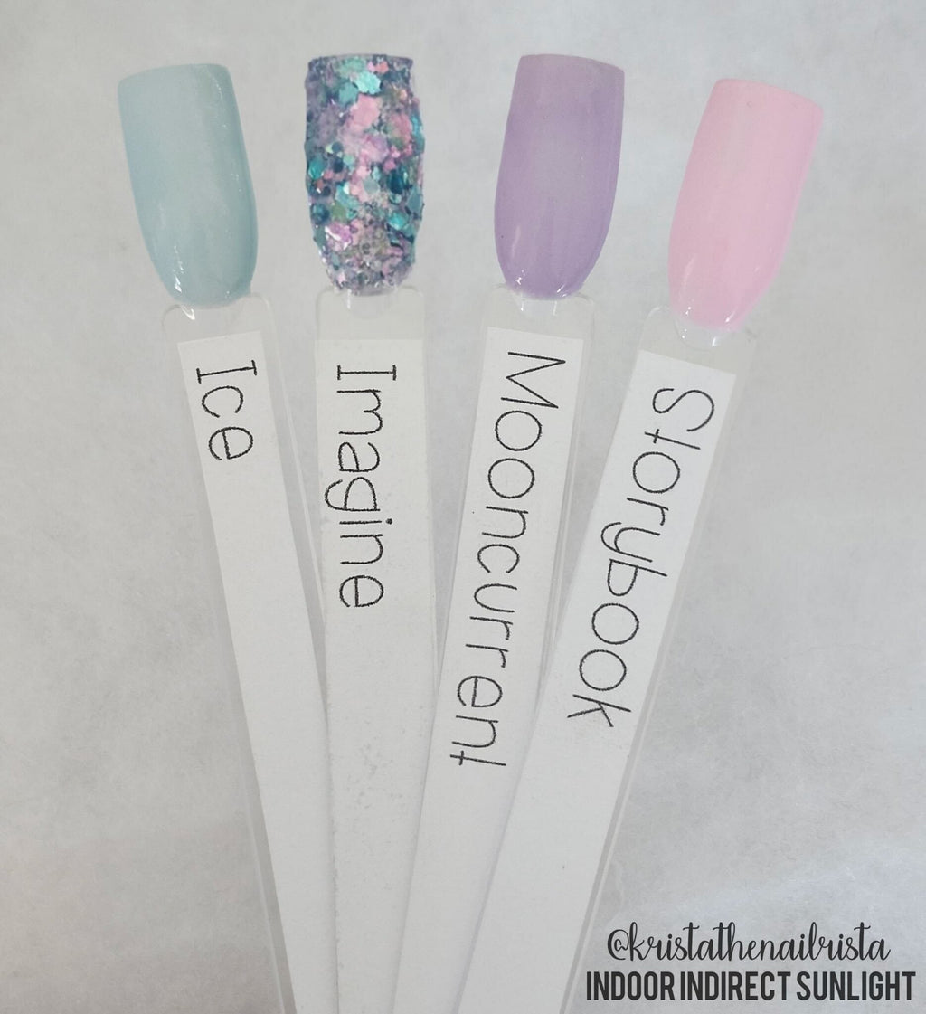 -Imagine is a cornflower blue with different sized bubblegum pink holographic glitters that provide the perfect mix blue and pink.