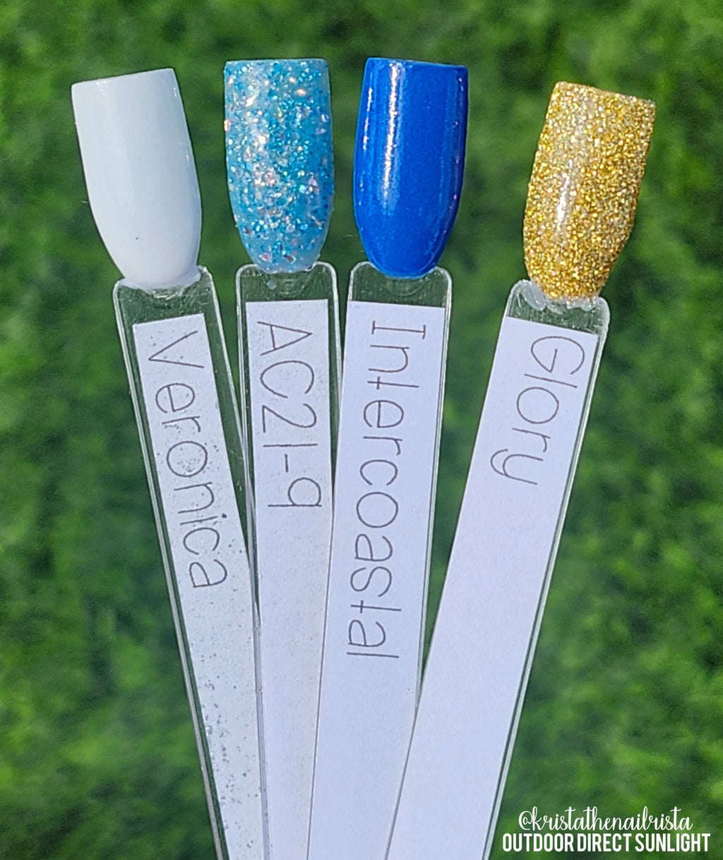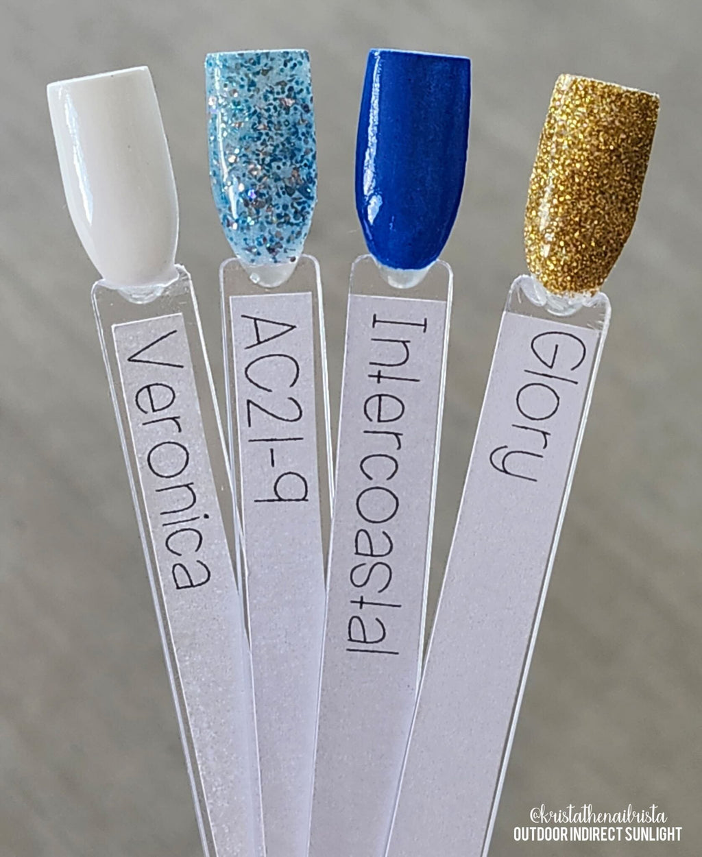 - AC21-09 (.5 oz.) - This advent color is a baby blue base when warm with blue and holographici glitters and iridescent flakes when cold