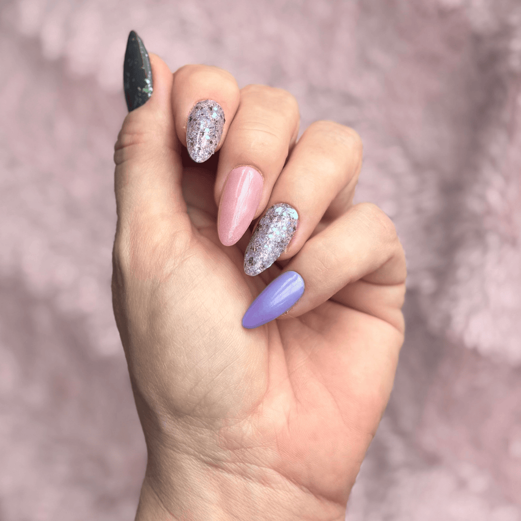 Float into a candy-colored daydream with a 4 shade dip powder kit that brings soft whimsy, glowing shimmer and playful color-shift magic to your nails.