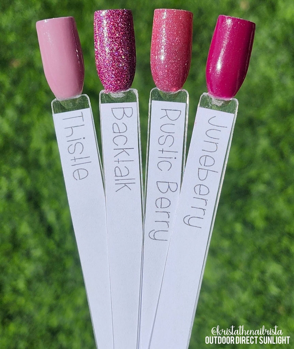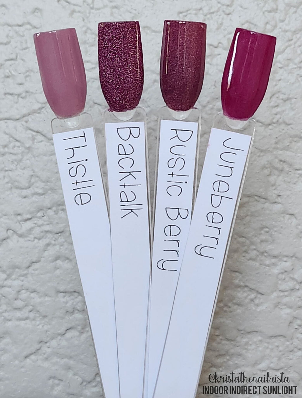 -Rustic Berry is a rich mulberry or deep berry purple with a shimmery finish.