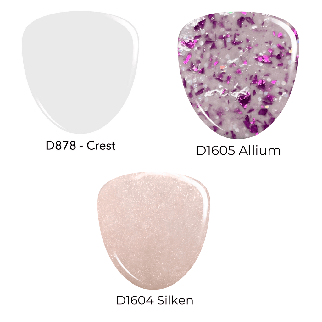Allium is Silken's sassy sister. It is a soft milky, blush base with pink and silver flakes for a delicate and romantic finish.