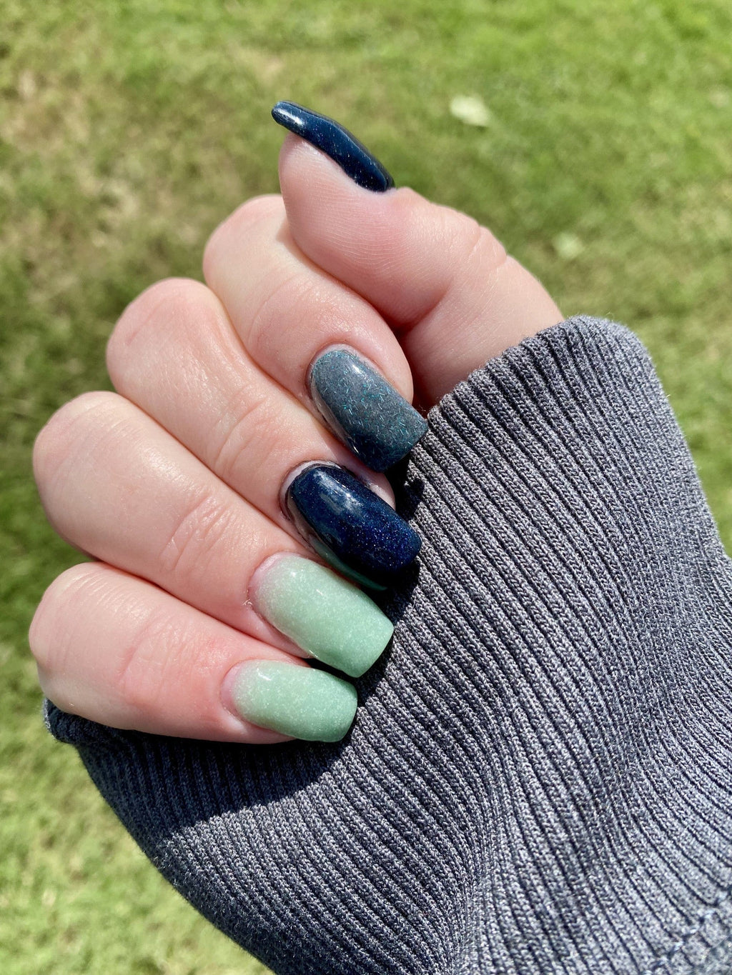 - D1516 Fanpire: A darker, rich indigo-blue packed with fine shimmering glitter, creating a dimensional sparkle effect. Chrome-able.