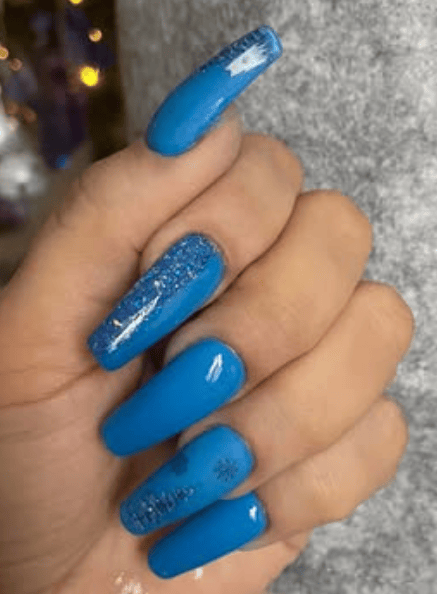 2023 Advent Day 1 is a beautiful medium blue shade with tons of multi colored flakes!