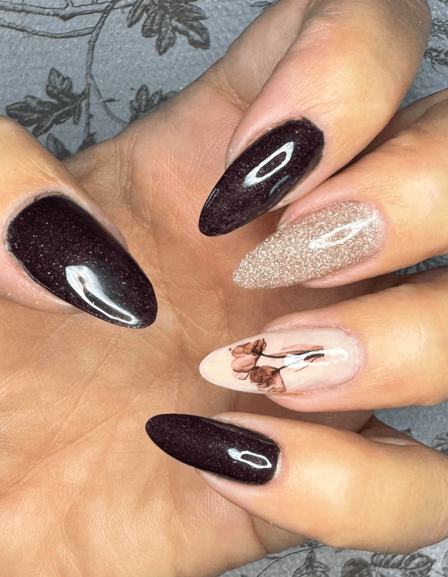 Bryn is a beige base with a champagne, silver and orange glitter.