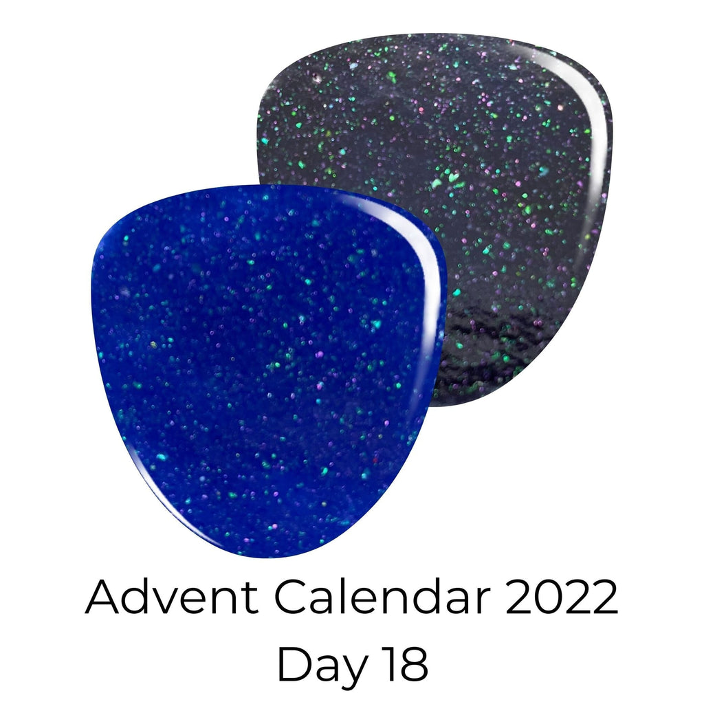 This Advent Calendar shade is perfect for winter! A deep royal blue filled with lavender and green flakes that deepens to a dark navy blue when you're in the cold!
