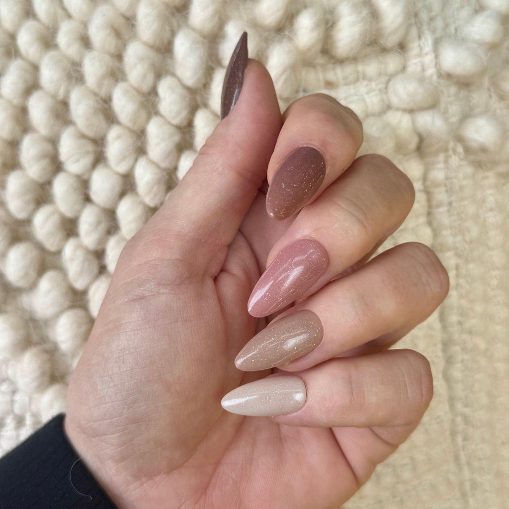 - J1552 - Softly Spoken 2 - 1 oz. light, milky brown with a warm undertone and micro-sparkle with an earthy feel.