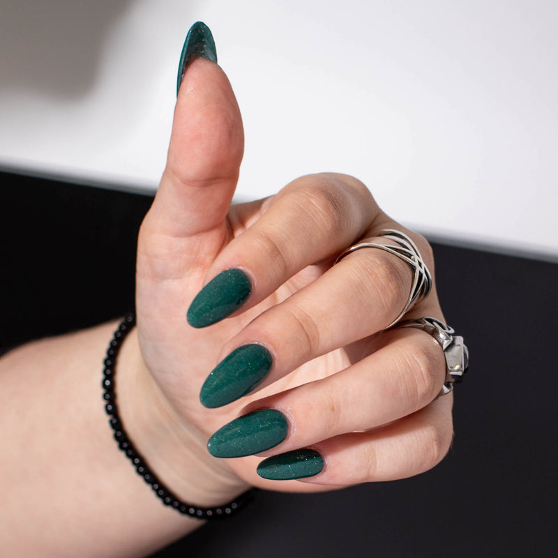 What it is: She has returned! Spruced Up is the perfect pine shade with the finest silver shimmer. Wear her straight up or grab a tack-free gel and the Spectra lamp and chrome her!