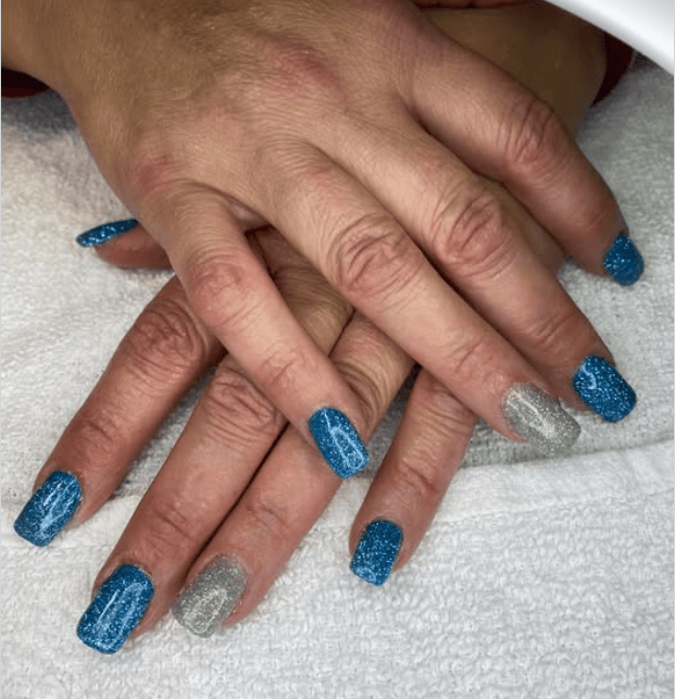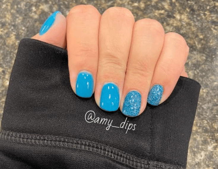 Pair Stare with D131 Tender for a blue-green dip powder manicure with some added sparkle.