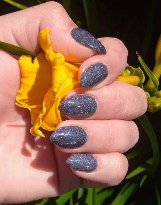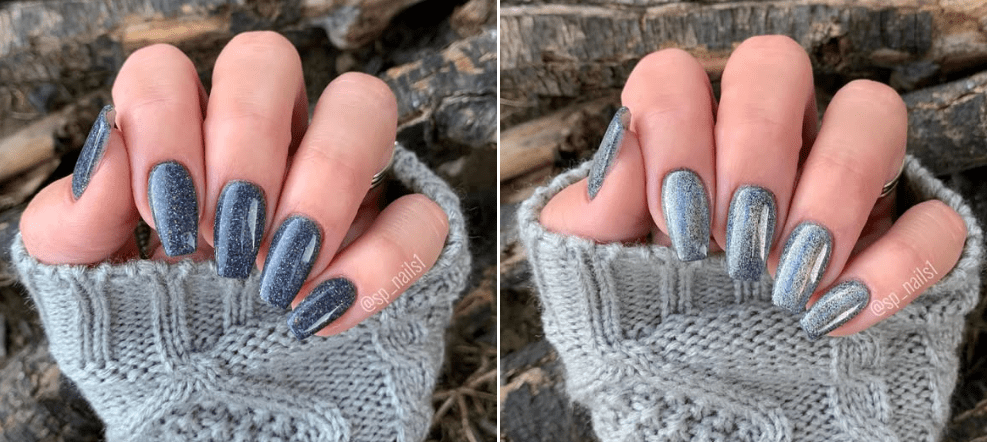 Dreamer is a dark grey powder with tricolored glitter. When chromed, Dreamer is a light grey powder with tricolored glitter. ** Need Tack-Free Gel Top Coat and buff chrome applicators? Buy the bundle here.
