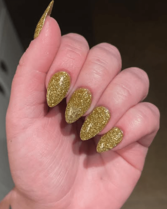 Trophy is the gold medallion in this collection. It's a yellow gold glitter and when dipped, it's pure gold goodness. When chromed, you’ll see a pure gold chrome with little hints of gold glitter peeking through.