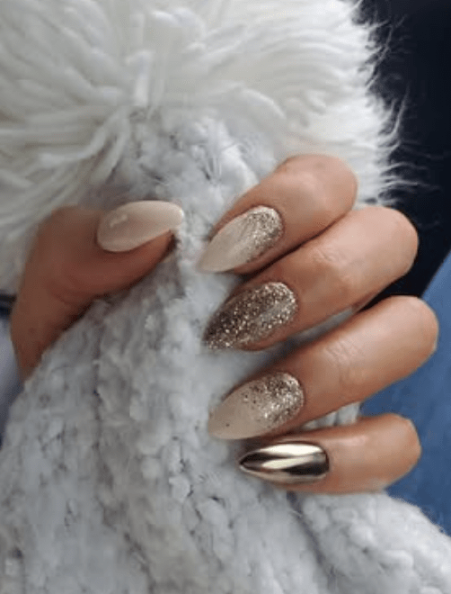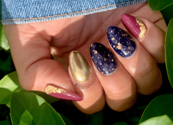 Trophy is the gold medallion in this collection. It's a yellow gold glitter and when dipped, it is pure gold goodness. When chromed, you’ll see a pure gold chrome with little hints of gold glitter peeking through.