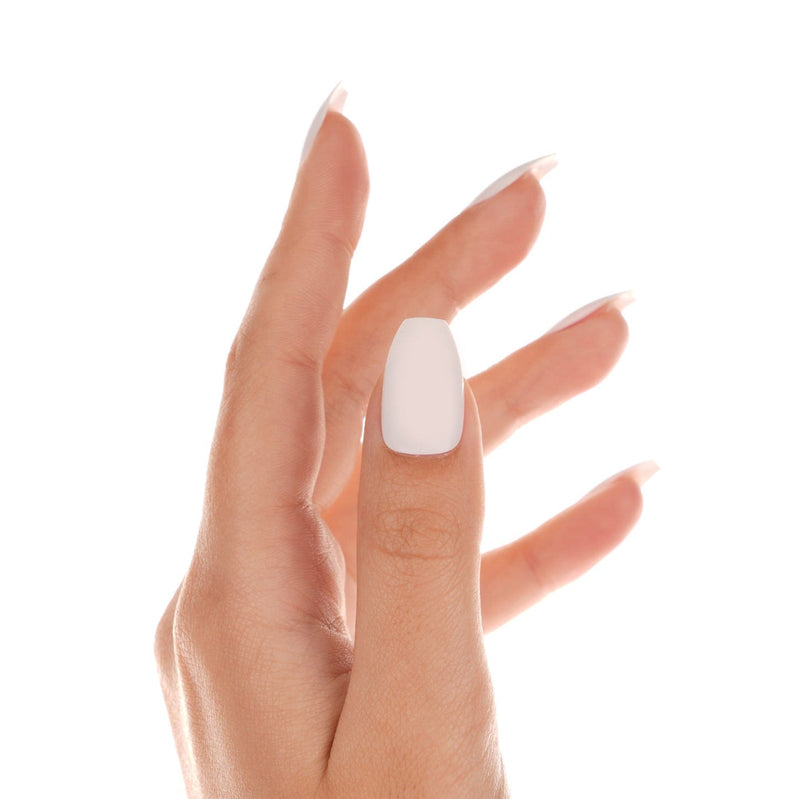 5. Line up the press on nail to the natural nail and hold for 30+ seconds with medium pressure. Repeat on all nails.
