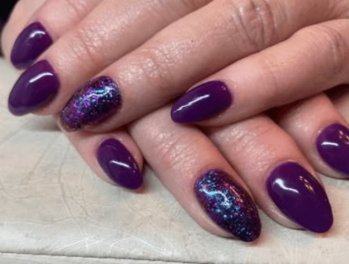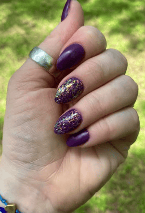 Raven is a playful color that is perfect for every season. Pair her with D556 Empire, and D176 Luna for a fun purple tonal dip powder manicure.