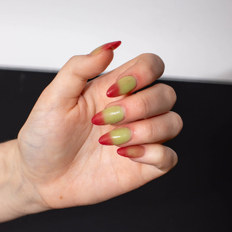 Red Frost is a creamy, grinch-y green that turns red when cold.