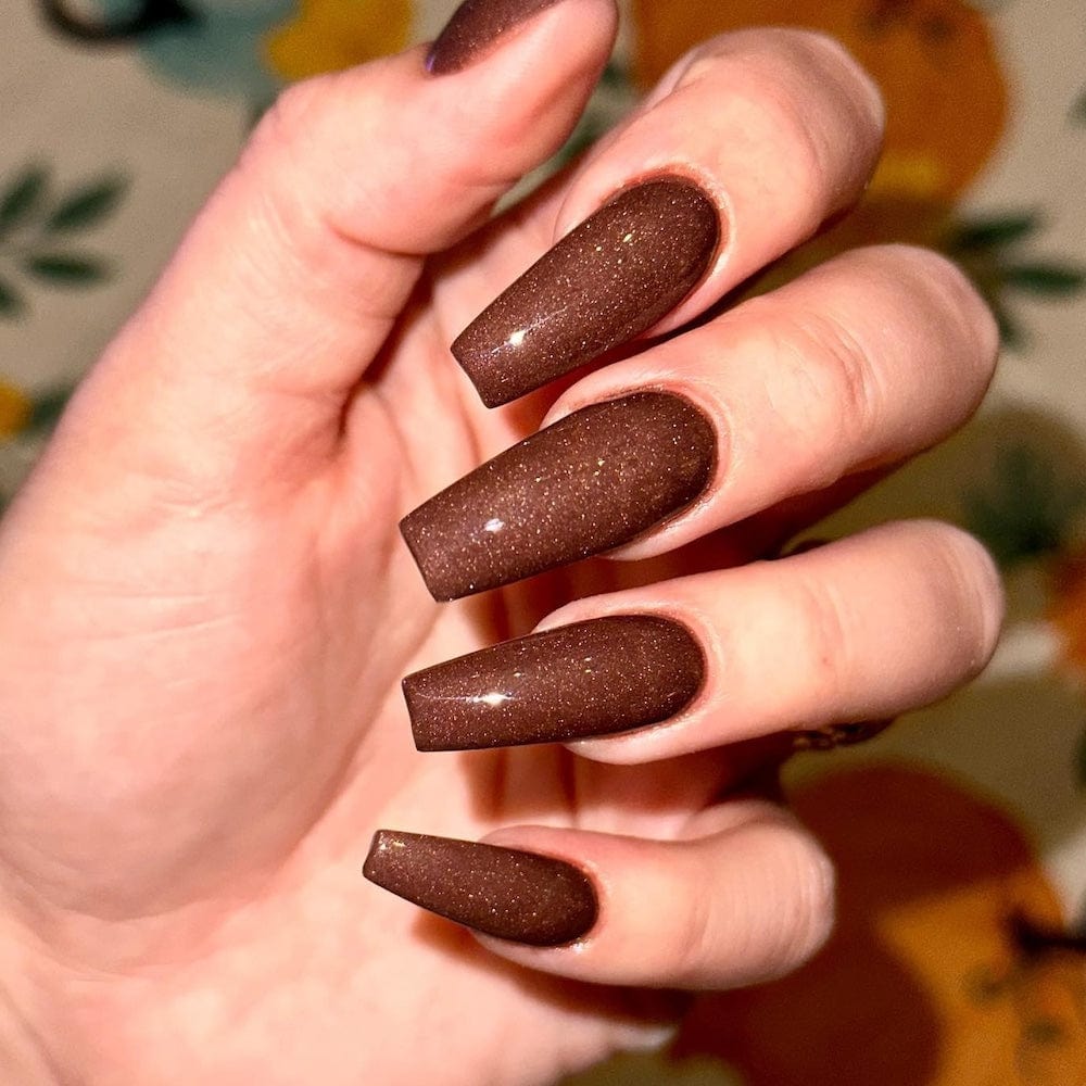 Originally from our Cookie Exchange Mystery Box, Ginger Snap is a chocolate brown base with silver shimmers that can be chromed to create a subtle glazed effect.