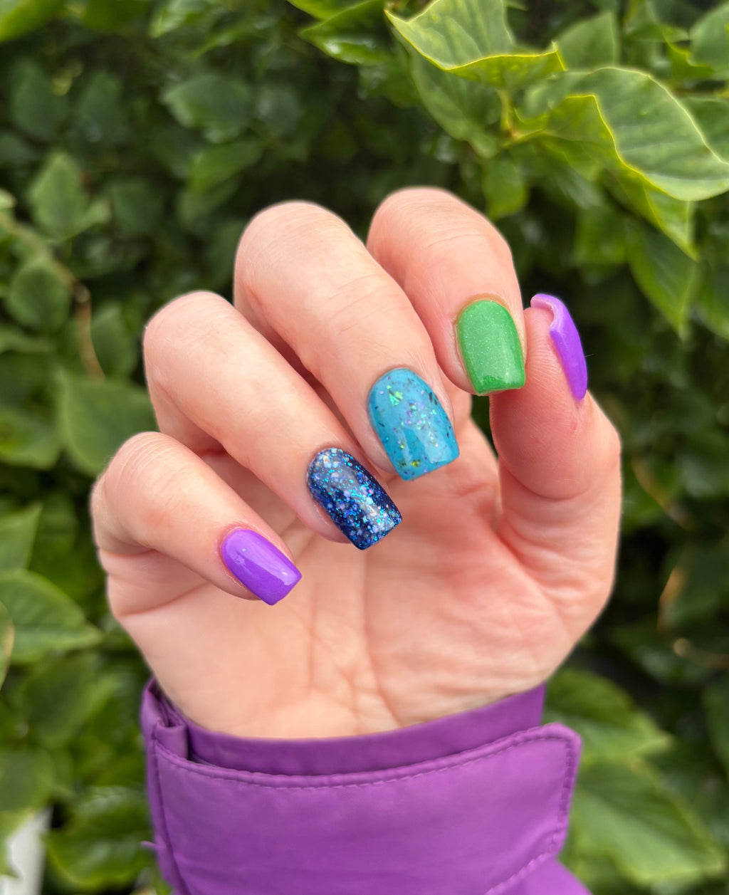 D1431 Feathered & Fierce is a deep, glittering blue packed with iridescent flakes for show-stopping drama.